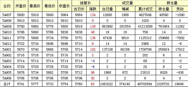 主力TA807合約當(dāng)日交易走勢