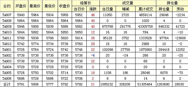 主力TA807合約當日交易走勢