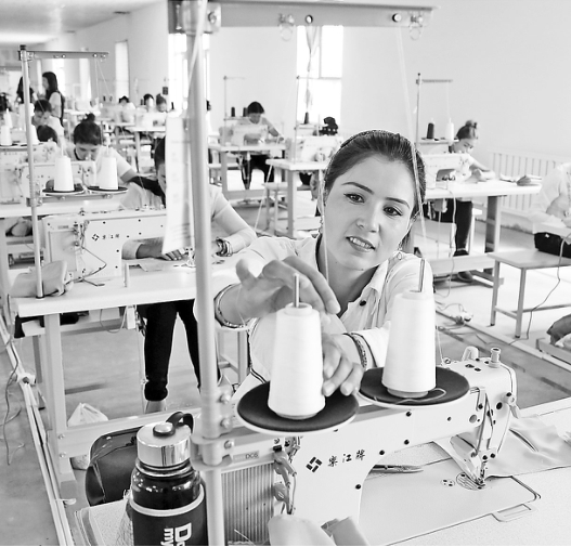 7月3日,拜城縣婦女在該縣正邦服飾有限公司參加崗前技術(shù)培訓(xùn)。