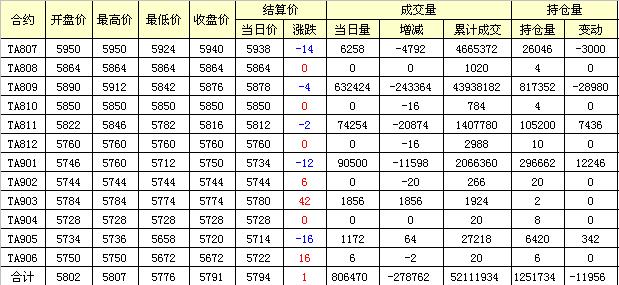 主力TA807合約當(dāng)日交易走勢(shì)