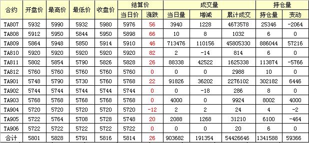 主力TA809合約當(dāng)日交易走勢