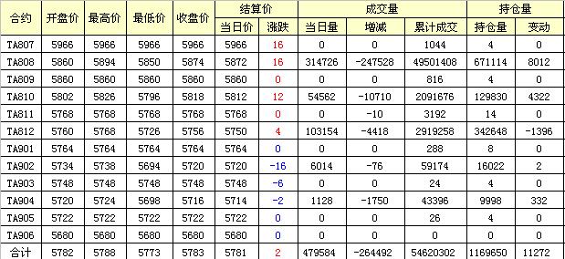 主力TA809合約當(dāng)日交易走勢