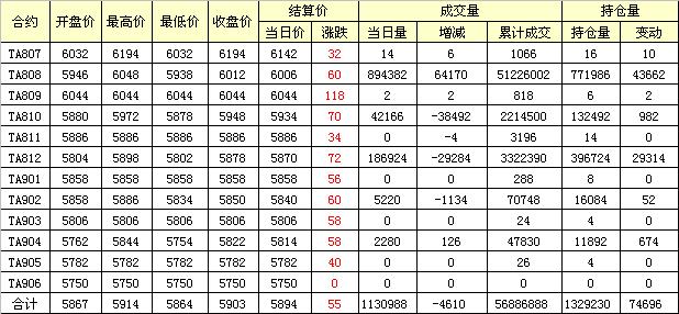 主力TA809合約當(dāng)日交易走勢
