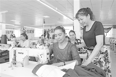 7月25日,庫車思琪制衣有限公司車間負(fù)責(zé)人在指導(dǎo)工人趕制服裝。庫車思琪制衣有限公司于去年8月入駐齊滿鎮(zhèn)創(chuàng)業(yè)就業(yè)園,目前公司已解決280人就業(yè),其中貧困群眾224人,助推當(dāng)?shù)孛撠毠怨ぷ鳌?標(biāo)題:服裝企業(yè) 助力脫貧攻堅)