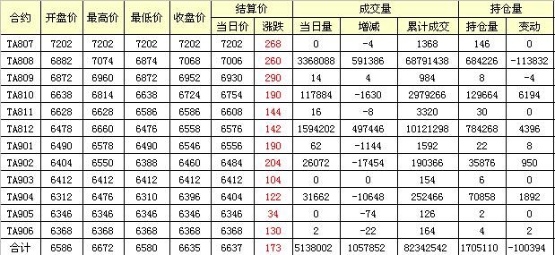 主力TA809合約當(dāng)日交易走勢