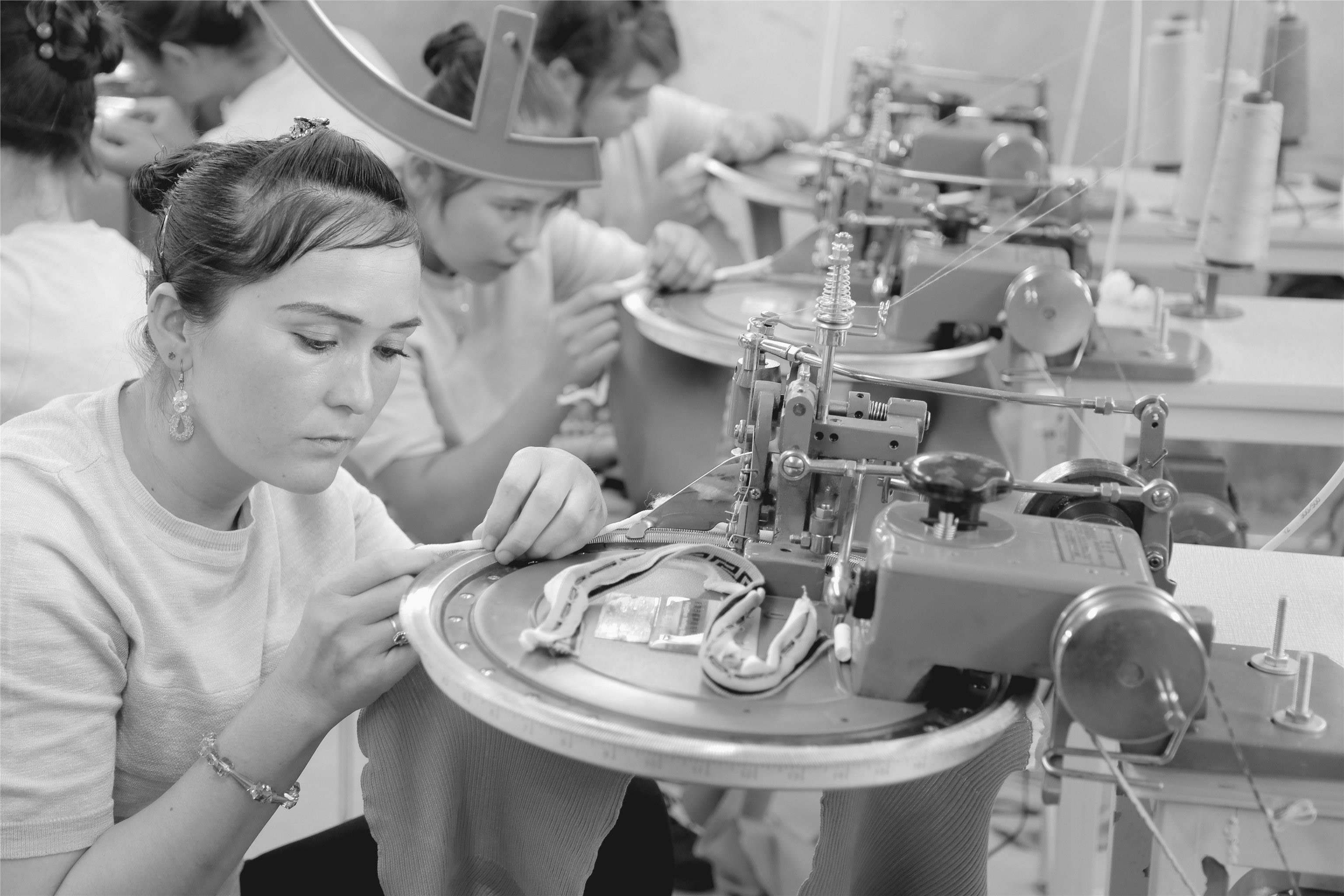7月26日,兵團(tuán)第十四師224團(tuán)和泰新村村民在村衛(wèi)星工廠加工服裝。金泰紡織廠在村里建起衛(wèi)星工廠,吸納富余勞動力就業(yè)。(標(biāo)題:金泰紡織衛(wèi)星工廠促就業(yè))