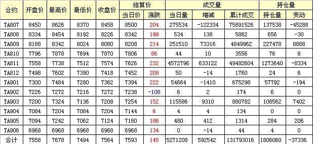 主力TA809合約當(dāng)日交易走勢