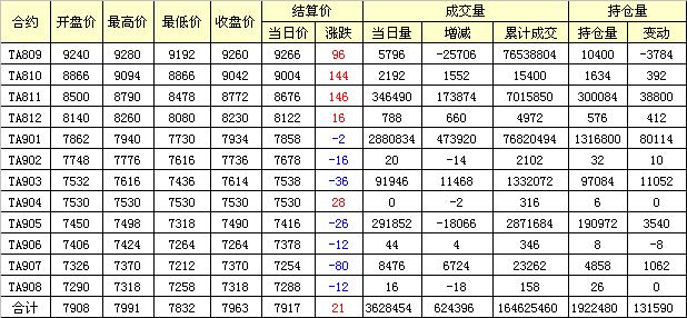 主力TA809合約當日交易走勢