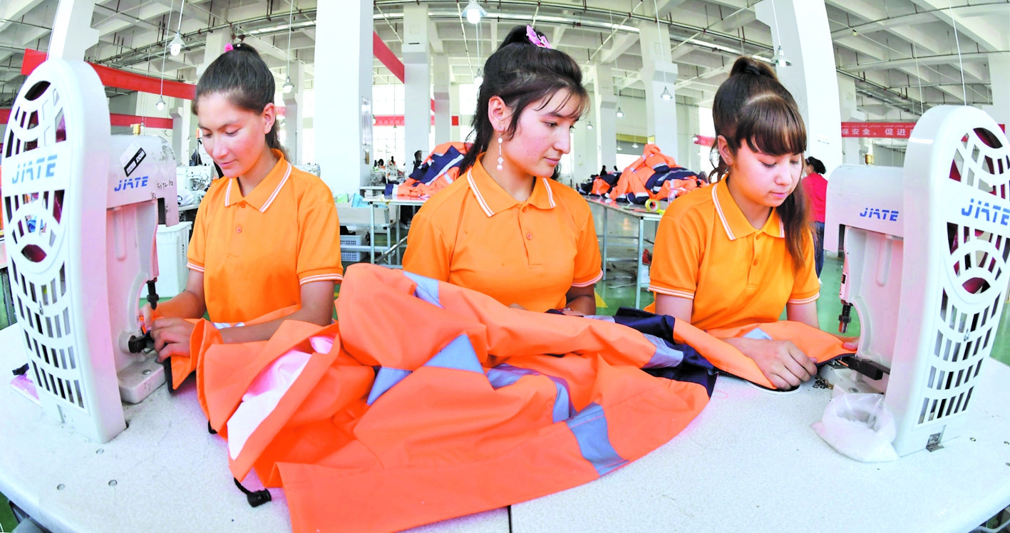 9月1日,位于喀什經(jīng)濟(jì)開發(fā)區(qū)深圳產(chǎn)業(yè)園的喀什摩登瑞蕾服飾有限公司員工在服裝縫紉車間制衣。目前,深圳產(chǎn)業(yè)園已入駐企業(yè)76家,吸納當(dāng)?shù)剞r(nóng)村富余勞動力1萬多人就業(yè),,僅今年新增1000多人就業(yè),其中50%的員工是貧困家庭子女。(標(biāo)題:喀什深圳產(chǎn)業(yè)園助力脫貧攻堅)
