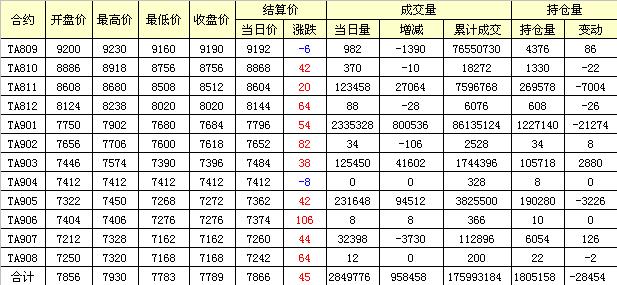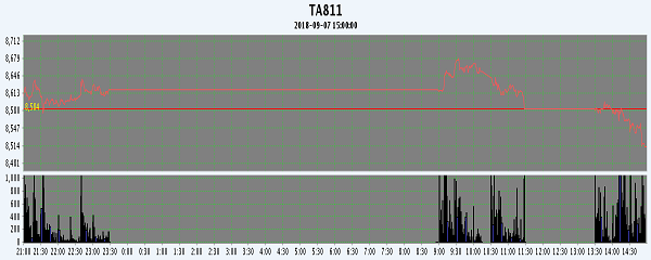 主力TA811合約當(dāng)日交易走勢(shì)