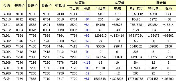 主力TA811合約當(dāng)日交易走勢
