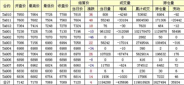 主力TA811合約當(dāng)日交易走勢(shì)