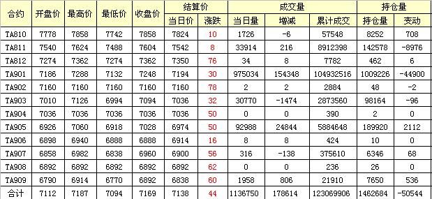 主力TA811合約當日交易走勢