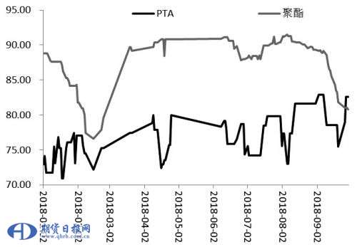 PX方面,鎮(zhèn)海煉化65萬噸/年的PX裝置計(jì)劃10月開始進(jìn)行為期45天的檢修,韓國SK2號45萬噸/年的PX裝置計(jì)劃10月中旬開始進(jìn)行為期20天的檢修,新加坡裕廊芳烴80萬噸/年的PX裝置計(jì)劃11月開始進(jìn)行為期30-40天的檢修。PX裝置大面積檢修將造成PTA原料供應(yīng)緊缺。