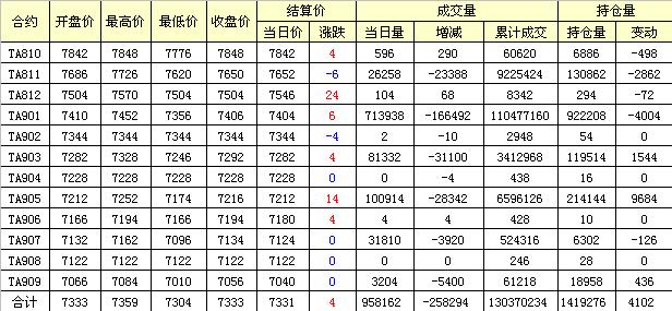 主力TA811合約當(dāng)日交易走勢(shì)
