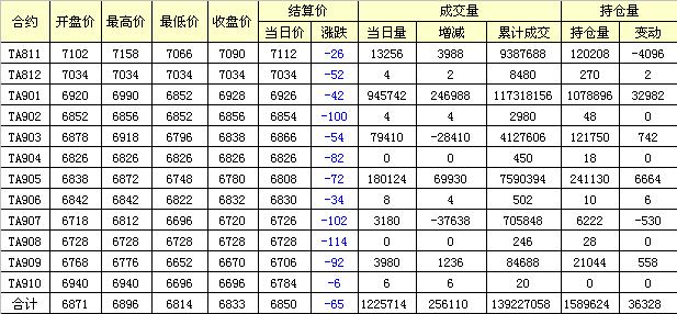 主力TA901合約當日交易走勢