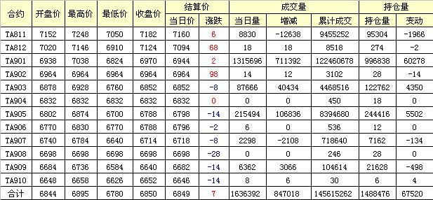 主力TA901合約當(dāng)日交易走勢(shì)