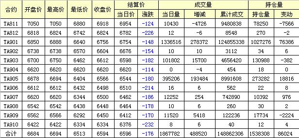 主力TA901合約當(dāng)日交易走勢