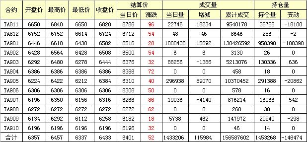 主力TA901合約當日交易走勢