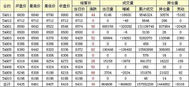 主力TA901合約當(dāng)日交易走勢(shì)