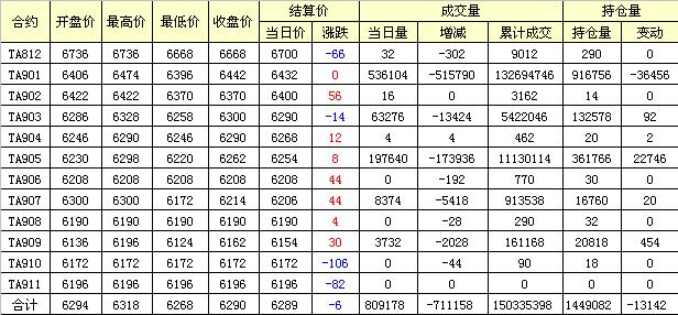 主力TA901合約當(dāng)日交易走勢