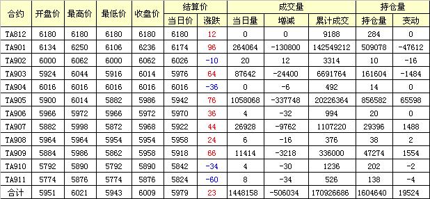 主力TA901合約當日交易走勢