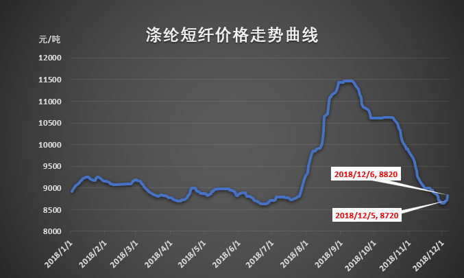受中美貿(mào)易戰(zhàn)休戰(zhàn)利好,原料行情修復(fù)性反彈,滌綸短纖價(jià)格也跟隨上漲。