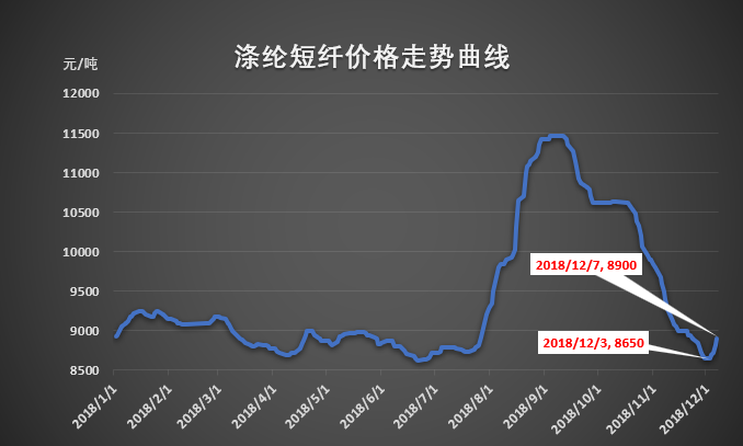 受中美貿(mào)易戰(zhàn)休戰(zhàn)利好,原料行情修復(fù)性反彈,滌綸短纖價格也跟隨上漲。