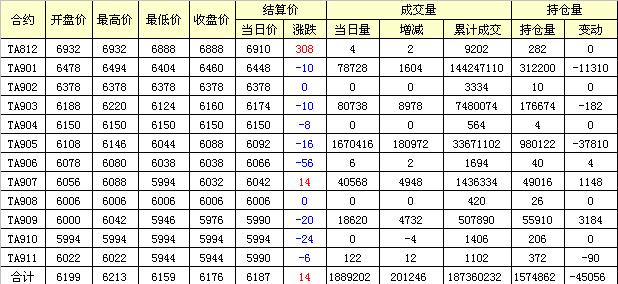 主力TA901合約當(dāng)日交易走勢(shì)