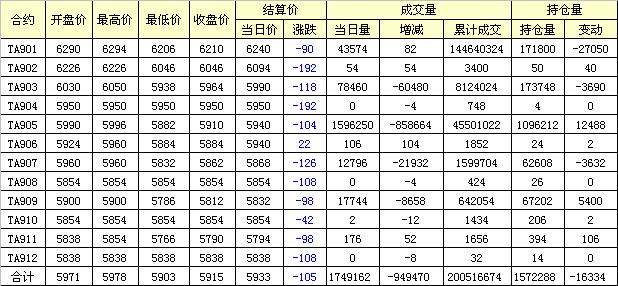主力TA901合約當(dāng)日交易走勢(shì)