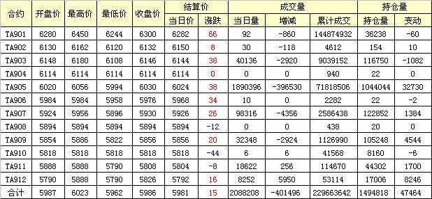 主力TA905合約當(dāng)日交易走勢