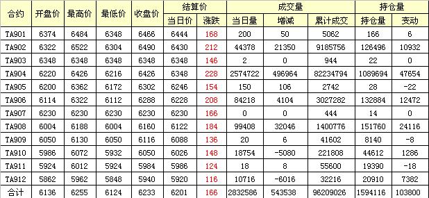 主力TA905合約當日交易走勢