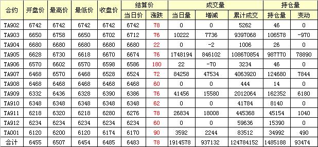 主力TA905合約當(dāng)日交易走勢(shì)