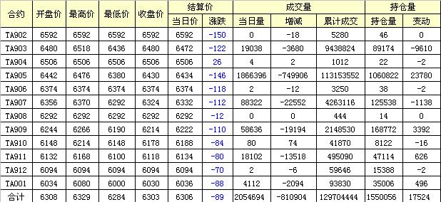 主力TA905合約當(dāng)日交易走勢
