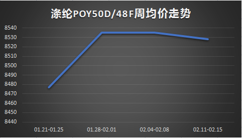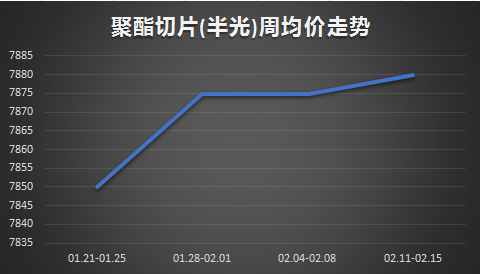 聚酯切片:本周聚酯切片窄幅震蕩。截止到本周四江浙半光切片價(jià)格7925元/噸,較節(jié)前同期上漲50元/噸;有光切片價(jià)格7875元/噸,較節(jié)前同期上漲25元/噸。本周半光切片均價(jià)7925元/噸,較上周上漲0.63%;有光切片均價(jià)7869元/噸,較上周上漲0.24%。節(jié)后歸來(lái),原料價(jià)格漲后回落,切片成本暫無(wú)利好,加之目前切片下游及終端工廠(chǎng)尚未復(fù)工,場(chǎng)內(nèi)交投清淡,受此影響,切片工廠(chǎng)暫無(wú)明顯調(diào)價(jià)意愿,周內(nèi)多報(bào)價(jià)穩(wěn)定,場(chǎng)內(nèi)商談重心變化不大,切片窄幅震蕩。