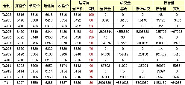 主力TA905合約當(dāng)日交易走勢(shì)