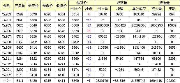 主力TA905合約當(dāng)日交易走勢(shì)