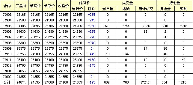 主力CY905合約當日交易走勢