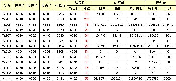 主力TA905合約當(dāng)日交易走勢