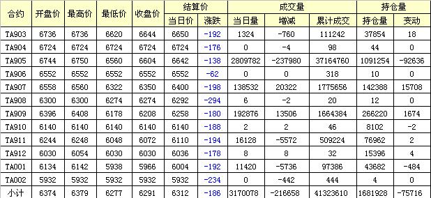 主力TA905合約當日交易走勢