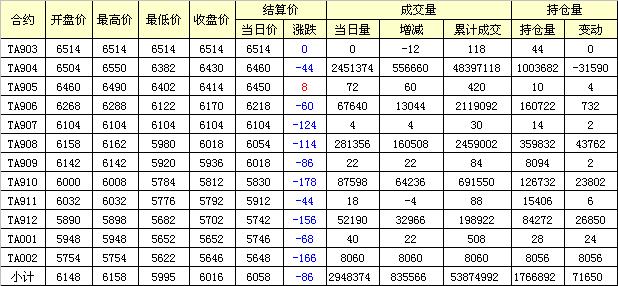 主力TA905合約當(dāng)日交易走勢(shì)