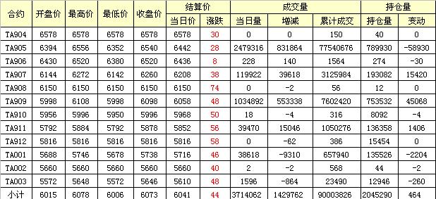 主力TA905合約當(dāng)日交易走勢