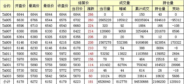 主力TA905合約當(dāng)日交易走勢
