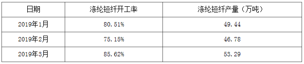 1季度滌綸短纖開工率及產(chǎn)量統(tǒng)計表