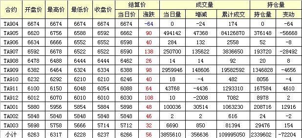 主力TA905合約當(dāng)日交易走勢(shì)