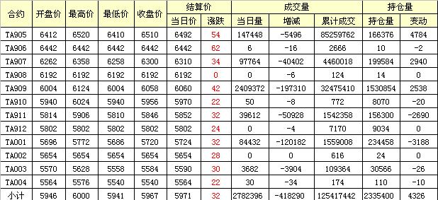 主力TA905合約當(dāng)日交易走勢