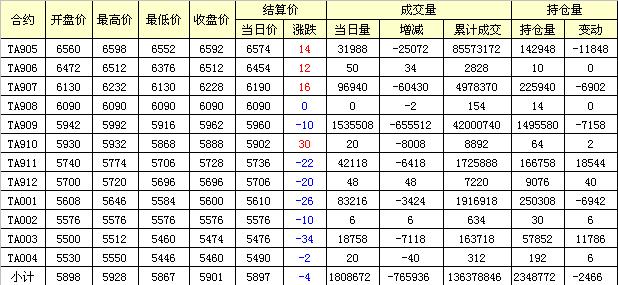 主力TA905合約當(dāng)日交易走勢(shì)