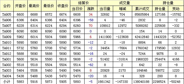 主力TA905合約當(dāng)日交易走勢(shì)