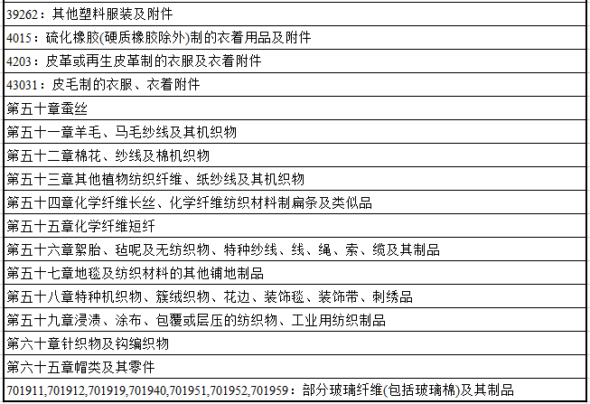 涉及產(chǎn)品包括(僅指紡織服裝統(tǒng)計項下產(chǎn)品)