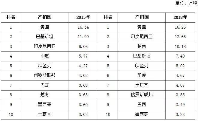 2015-2018年中國聚酯短纖出口貿(mào)易前十名單